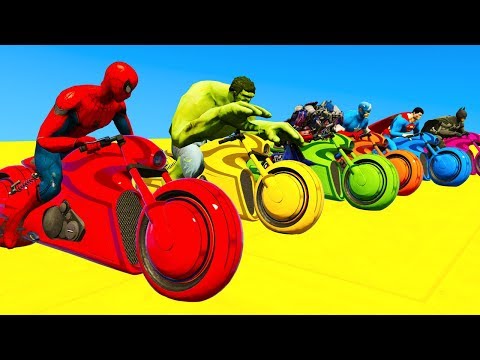 LEARN COLORS Motor Bikes & Motorcycles Jump for kids w/ Cars Spiderman Cartoon for children